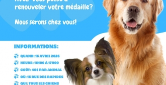Avez-vous pensé à renouveler votre médaille? Le Refuge le Coeur sur 4 Pattes sera au Complexe multifonctionnel Agnico Eagle pour vous accueillir le jeudi 16 avril 2026 de 11h à 17h.